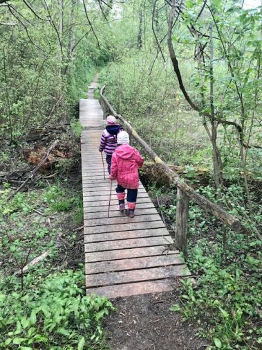 Auf dem 4 km langen Pfad gibt es viele Hörstationen, interaktive Spiele und Infotafeln, bei denen man den Auenwald erleben kann. Wir stoppen ständig an tollen Baumhöhlen, Holzbrücken und verschiedenen Wasserstellen, um zu picknicken oder zu spielen, so dass wir insgesamt fast 3,5 Stunden für den Rundweg benötigen.