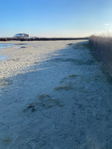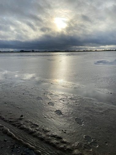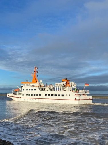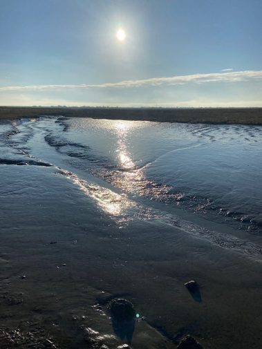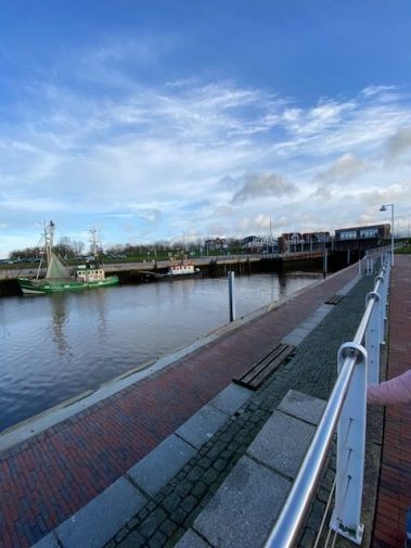 Aber uns zieht es ins 5km entfernte Bensersiel, wo wir direkt am Hafen parken. Von hier fahren die Schiffe nach Langeoog. Der Ort selbst hat für uns nichts Besonderes, jedoch den Strand mit seinen weißen, roten und blauen Strandkörben und der langen Küstenlinie finden wir spektakulär – sowohl bei Ebbe als auch bei Flut. Bei jedem Wetter lassen sich hier traumhafte Strandspaziergänge unternehmen.