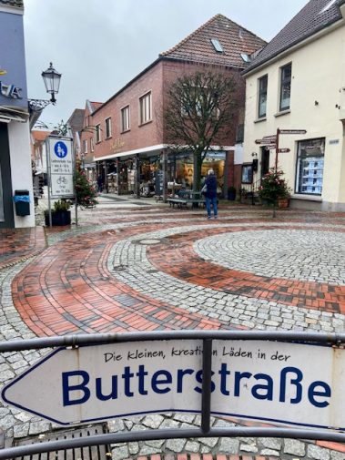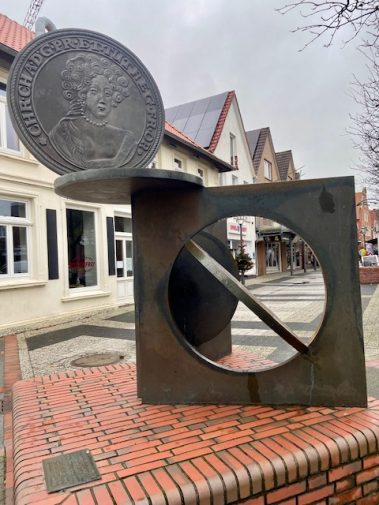 Am Marktplatz rechts vorbei verläuft ein Teil der Fußgängerzone, die übrigens die erste in Ostfriesland gewesen sein soll. Es gibt zauberhafte Geschäfte, kleine Cafés zwischen größeren Kettengeschäften und das Einkaufen und Bummeln macht bei dieser Atmosphäre viel Spaß. Einmal die Herderstrasse heruntergebummelt, biegen wir links in den Südwall ein, um danach vorbei am Münzdenkmal die Steinstraße hochzubummeln.