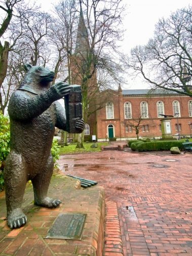 Wir beginnen in Esens, das für uns eines der schönsten kleinen Ostfriesenorte und wunderschön zum Bummeln ist. Zudem gibt es 1.500 kostenfreie Parkplätze um das ganze Stadtzentrum. Wir parken am Norderwall und starten unseren Stadtrundgang durch Esens in der Westerstrasse. Hier befinden sich schon einige der pitoresken kleinen Ostfriesenhäuser, die es in der ganzen Innenstadt gibt und die den Ort so ansprechend machen. Im Herzen der Stadt befindet sich der Markt und hier warten die ersten Bären auf uns. Von denen gibt es insgesamt 48 Stück, aber warum?