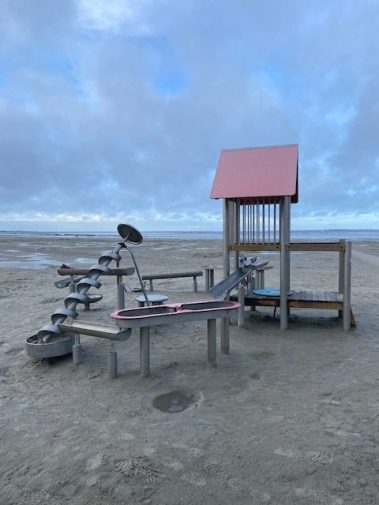 Unser Tipp: Das Strandportal, in dem sich ein Restaurant, eine Touristeninformation und eine kleine Ausstellung befinden, hat auch einen der besten Indoor-Sand-Spielplatz an der Küste. Unser absoluter Schlechtwettertipp in Ostfriesland mit Kindern. Bennis Abenteuerland — Bensersiel