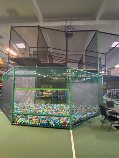 Von hier oben sehen wir auch die beiden Indoor Soccer Plätze. Wem normales Indoor-Kicken zu langweilig ist, der kann hier auch Bubble-Soccer buchen. Nicht so unser Ding, aber schaut lustig aus 😊.