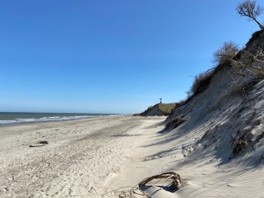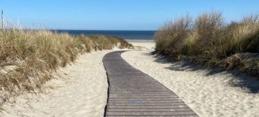 Leider ist es schon fast wieder Zeit zum Flughafen zu radeln – jedoch nicht, ohne nochmals an die Ostspitze zu fahren. Der Kalfamer verzaubert uns ebenfalls mit seinen Weiten aus Sand, Wasser und grünen Dünen.