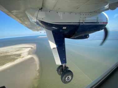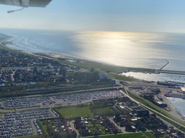 Da wir nur einen Tag Zeit haben und fliegen immer ein Abenteuer ist, fliegen wir mit dem Inselflieger von Norddeich nach Juist. Der Check In dauert eine Minute und schon werden wir aufgerufen und dürfen in die kleine 8-Sitzer-Maschine einsteigen, die auch sogleich auf die Startbahn rollt. Der Blick von oben auf das Watt und die anderen ostfriesischen Inseln ist einfach nicht in Worte zu fassen und viel zu schnell ist der Flug vorbei.