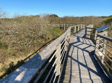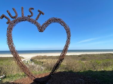 Wir düsen los in Richtung Ort und kurz davor befindet sich ein kleine Fahrradparkplatz und der Aufgang zum Otto-Leege-Pfad. Das sollte man in keinem Fall verpassen, der nach dem Naturforscher Otto Leege benannt ist und ein ökologischer und künstlerischer Lehrpfad ist. Über die Holzstege führt der Weg und auf Tafel ist die Flora und Fauna von Juist erklärt. Danach führt der Weg fast über die ganze Insel und beinhaltet künstlerische Elemente und weiter Infotafeln. Es ist sehr liebevoll gestaltet und wir sind überrascht über die üppige Vegetation und dass Juist nicht nur aus Sand besteht. 😊