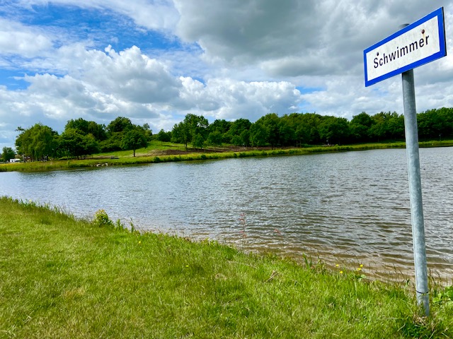 Die kleine Runde ist etwa 2 km lang und endet wieder am Badestrand, an dem wir noch ein bisschen sitzen, im Sand spielen und den Blick aufs Wasser genießen. Mittlerweile gibt es bei Matheo am Ihler Meer auch eine schöne Außenterrasse: MaTheo am Ihler Meer | Facebook