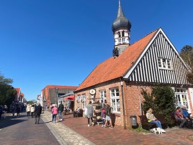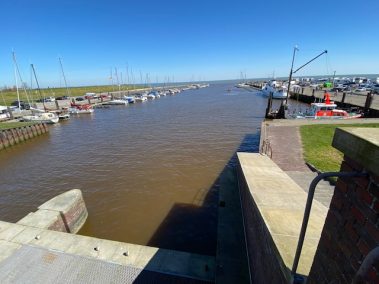 Wir starten in Horumersiel, welches ein schöner kleiner Ort ist, der jedoch komplett auf Touristen ausgelegt ist. Aber gerade für Kinder bietet es neben dem schönen Kurgarten mit dem Seewiefken, dem örtlichen Wahrzeichen auch einen kilometerlangen Grünstrand (gebührenpflichtig ohne NSC). Aber auch die Goldstrasse mit ihren Cafés, Läden und Restaurants laden zum Bummeln ein. An Regentagen warten die Frieslandtherme oder das Küstenwachboot im Ortskern. Und ein Abstecher über den Deich zum Außen- und Yachthafen ist ein schöner Spaziergang, bei dem man die Containerschiffe und andere Boot beim Vorbeifahren oder Einfahren entweder vom Deich oder vom Wangersiel beobachten kann.