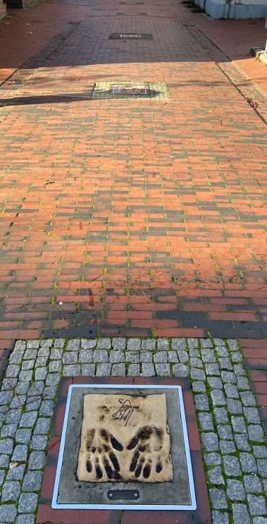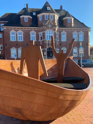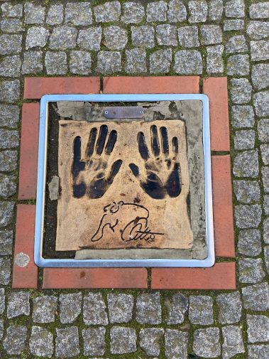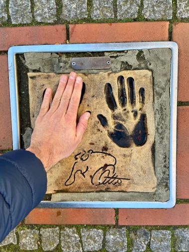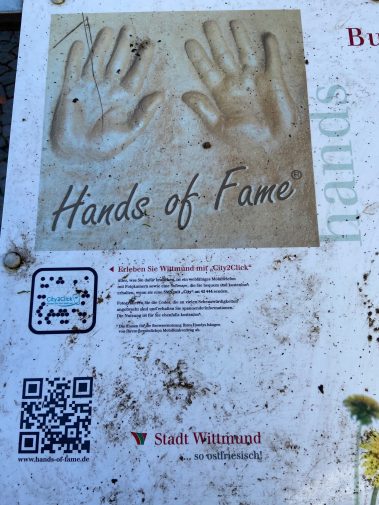 Wir starten in Wittmund und parken direkt auf dem Marktplatz. Von dort sind es nur wenige Schritte bis in die Innenstadt. Da diese quadratisch um die Kirche angelegt ist, kann man links und rechts herum. Wir entscheiden uns für rechts. Nach ein paar Meter wissen wir auch, warum Wittmund das Hollywood Ostfrieslands genannt wird, denn wie auf dem Walk of Fame in L.A. gibt es hier Handabdrücke bekannten ostfriesischer und deutscher Persönlichkeiten, dem Hands of Fame. Es finden sich Handabdrücke von Otto Walkes, Udo Lindenberg, Jörg Pilawa, usw.. An der Ecke Kirchstrasse / Drostenstrasse stoßen wir dann auf den Bundespräsidentenplatz, auf dem einige der bekanntesten deutschen Bundespräsidenten verewigt sind.  Bei dem vielen nach unten schauen, vergisst man fast, dass Wittmund auch eine kleine süße Einkaufsstadt ist.