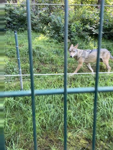 Auch die Wölfe im Park haben uns beeindruckt. Sie sind deutlich scheuer als die Bären, aber wenn man ein bisschen Geduld hat, kann man sie zwischen den Bäumen erspähen. Es war spannend, ihr leises, elegantes Verhalten in der natürlichen Umgebung zu beobachten.