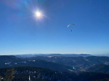 Danach steigen wir über den Dreifürstenstein hinunter zur Rasthütte Seibelseckle ab. Von dort laufen wir parallel zur Schwarzwaldhochstrasse -wieder mit tollen Ausblicken- zurück zum Berghotel. Dieser Weg ist teilweise rutschig und bei Schnee nicht ganz so gut zu laufen.