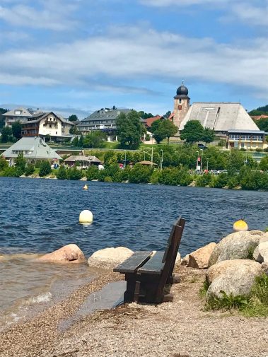 Danach steigen wir über den Riesenbühlweg wieder nach Schluchsee ab, kühlen unsere Füße im Wasser und genießen ein Eis.