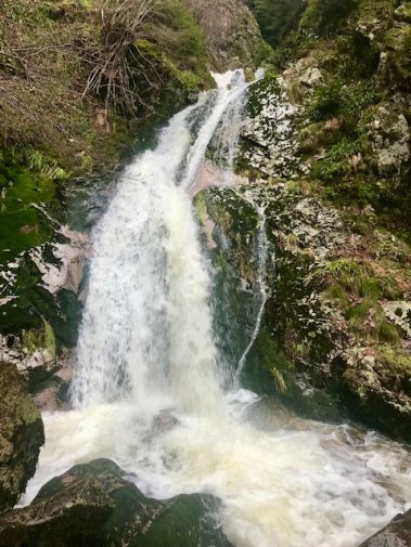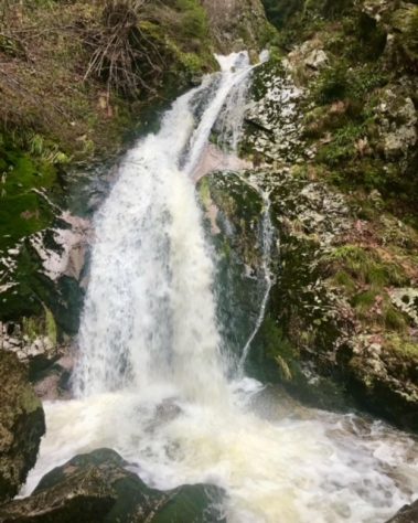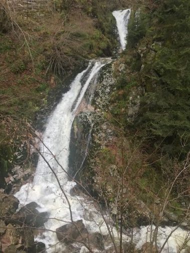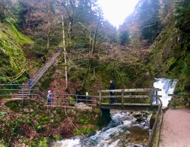 Wir gehen daher unter dem großen Eingangsschild zu den Allerheiligen Wasserfällen. Diese sind zu den höchsten und schönsten Wasserfällen im Nordschwarzwald. Es geht über schöne Brücken immer am Wasser entlang bis wir die ersten Kaskaden erblicken. Nun steigen wir die Treppen immer weiter bergauf und die Wasserfälle werden immer schöner und imposanter. Wir können gar nicht genug davon bekommen, dem Wasser zu zusehen, wie es sich die Felsen herunterstürzt.
