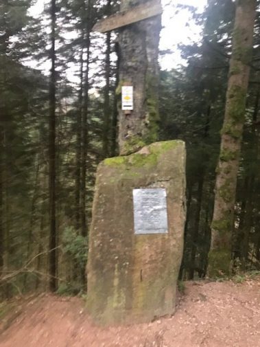 Nach 250 Stufen oben angekommen führt der Weg weiter am Bach entlang durch das Lierbachtal bis es rechts zum Ehrenmal des Schwarzwaldvereins abgeht. Diesen kleinen Umweg über die Anhöhe sollte man in jedem Fall machen. Das Mahnmal erinnert an die Gefallenen im zweiten Weltkrieg und ist genauso skurril wie faszinierend inmitten dieser Schwarzwaldromantik.