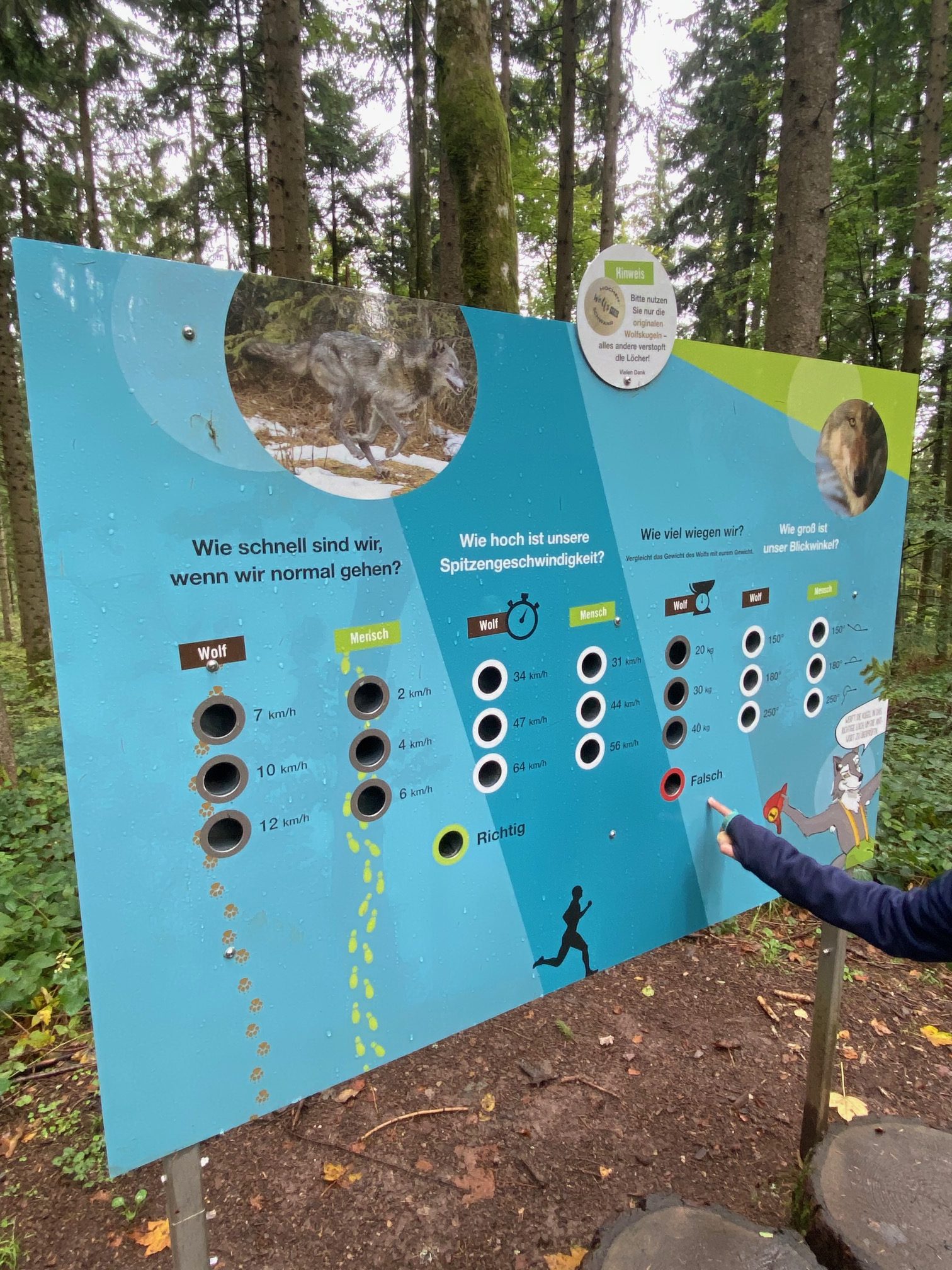Der Wolfspfad bei Höchenschwand ist wirklich ein tolles Erlebnis für Familien: man lernt viel über den Wolf, hat Spaß mit Spielen und Kugeln, genießt die Natur – und schleicht irgendwann selbst ein bisschen lautlos durch den Wald wie ein Wolf.
