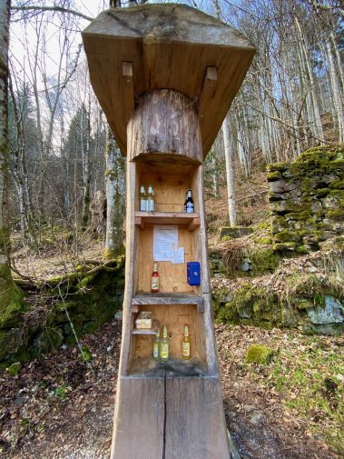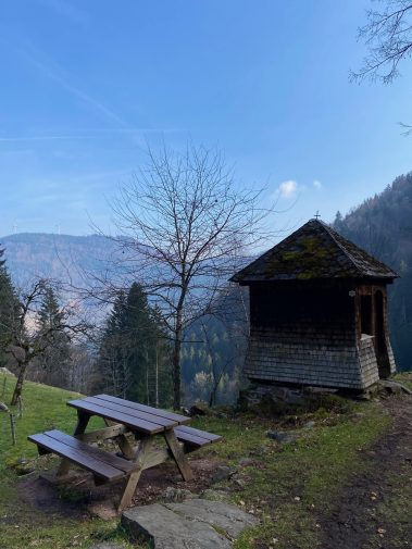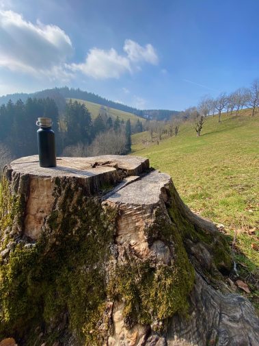 Unten im Tal angekommen, wartet ein besonderer Picknickplatz, denn in einer kleinen „Waldbar“ kann man sich ein leckeres Kaltgetränk kaufen und den Blick über den Schwarzwald genießen.