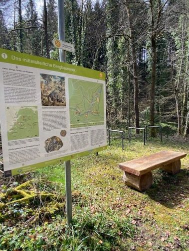 Aber dann wird’s wirklich interessant. Auf einem rund zwei Kilometer langen Rundweg taucht man ein in eine andere Zeit. Es ist kaum zu glauben, aber vor rund 700 Jahren war dieses idyllische Tal ein geschäftiger Ort – mit rauchenden Kohlenmeilern, schweißtreibender Arbeit und einem Berg, der durchlöchert war wie ein Schweizer Käse. Die Menschen kamen von überall her, um nach Silber zu graben. Was sie fanden, wurde später zu Münzen verarbeitet – in Freiburg, Breisach und anderen Orten der Region.