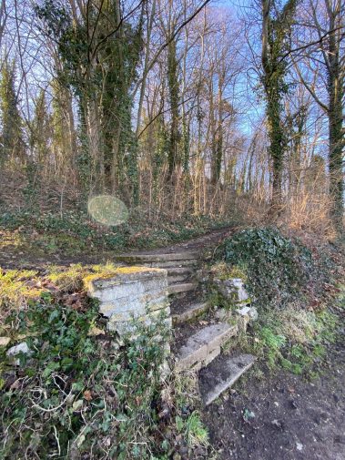 Gleichzeitig laufen wir auch den Obstbaumpfad, der auf Infotafel die Geologie und den regionalen Obstanbau erklärt. Nach etwa 2 km biegen rechts zur Burg ab und folgen nach etwa 1.5 km wieder dem Obstbaumpfad und laufen nicht direkt zur Burg. Wer hier rechts abbiegt, läuft einen kleinen Abenteuerpfad durch den Wald hoch zur Burg – gerade für Kinder ein cooles Erlebnis. Man kann sich hier richtig vorstellen, wie die Ritter durch den Wald geschlichen sind.