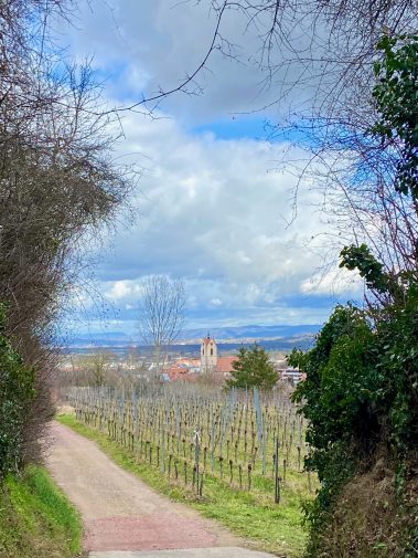 Frisch gestärkt laufen wir durch die Reben zurück nach Endingen zur Stadthalle.