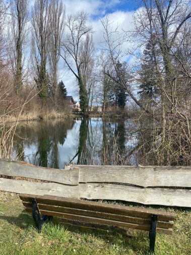Wir starten an der Stadthalle in Endingen und laufen die Straße Im Erle durch Endingen bis zum Erleweiher. Leider ist es noch zu kalt zum Baden, aber wir könne uns gut vorstellen, hier im Sommer eine kurze Abkühlung zu genießen. Ein Nichtschwimmer und Schwimmerbereich sind ausgewiesen, wie auch eine Liegewiese und kleiner Spielplatz.