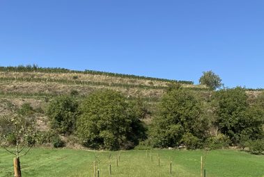 Der Weg schlängelt sich weiter durch die Reben, bevor er in einen kleinen Wald mündet. Durch den verwunschenen, urwaldartigen Laubwald steigen wir in kleinen Serpentinen wieder zurück nach Wasenweiler. Hier laufen wir kurz auf einer Nebenstraße durch den Ort. Ein echter Spaß für die Kinder: Die Landfrauen haben bunte Schnecken aufgehängt, und wir verbringen ein wenig Zeit damit, sie zu entdecken und zu zählen.