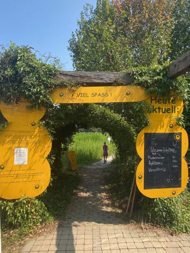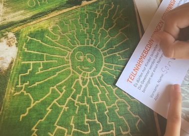 Heute zieht es uns in die Natur rund um Freiburg – ins Mais- und Hanflabyrinth in Opfingen. Jedes Jahr gibt es hier ein neues Thema, und in diesem Jahr dreht sich alles um Sonnenenergie. Die Felder wirken riesig, und wir können es kaum erwarten, uns mitten hinein zu stürzen.