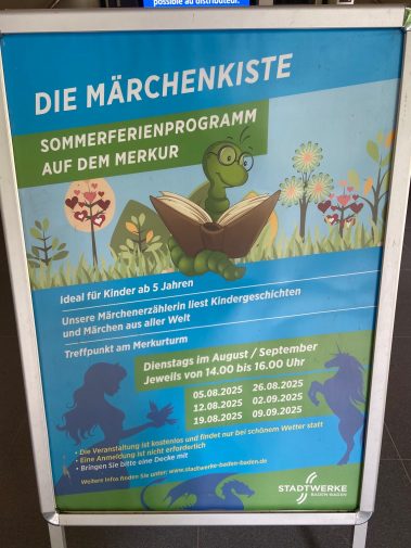 Tpp: Ein besonderes Erlebnis sind auch die Veranstaltungen auf dem Merkurberg. Für Kinder gibt es regelmäßig die „Märchenkiste“, während Erwachsene bei der „Krimikiste“ spannenden Lesungen in außergewöhnlicher Atmosphäre lauschen können.