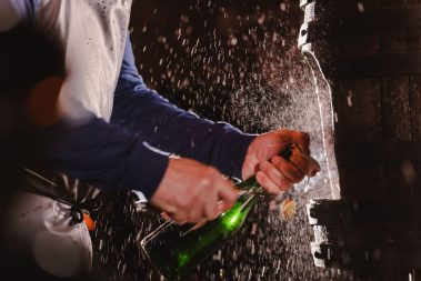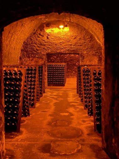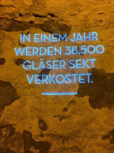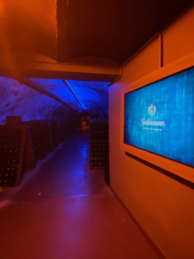 Von dort geht’s tiefer in die Details: Die Gärung findet in jeder Flasche einzeln statt, mit regelmäßigem händischem Drehen der Flaschen, dem sognannten „Rütteln“ (deshalb sind sie mit Kreidestrichen markiert). Nach mehreren Monaten Reifezeit folgt das Degorgieren – dabei wird die Hefe entfernt, die während der Reifezeit für Aroma und Perlage sorgt.