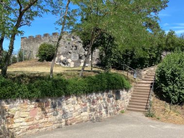 Hinter der Touristeninformation steigen wir die Treppen hinauf zum Münsterberg und laufen unter dem Hagenbachturm hindurch. Dies war früher ein Bürgergefängnis – mit tollem Blick in die Landschaft hinter den „schwedischen Gardinen“.