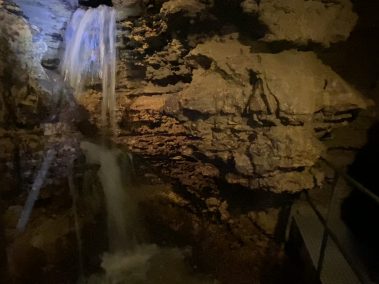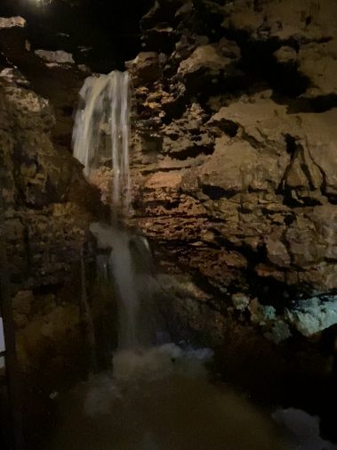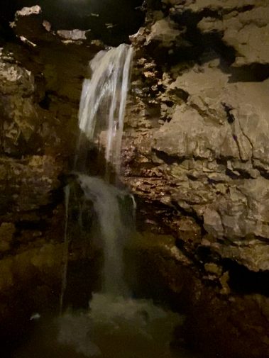 Der Höhepunkt der Tour ist der Wasserfall, der uns am Ende des Höhlenwegs erwartet. Mit einer imposanten Höhe von bis zu 5 Metern sprudelt das Wasser in einen kleinen Pool – ein Anblick, der uns staunen lässt und uns die Kraft der Natur noch einmal deutlich vor Augen führt. Es ist schwer zu beschreiben, aber es fühlt sich so an, als würde die Erde atmen, als ob sie uns ein kleines Geheimnis zeigt, das nur wenige Menschen je zu Gesicht bekommen. Die kühle, konstante Temperatur von 10 °C sorgt an heißen Sommertagen für eine wohltuende Erfrischung.