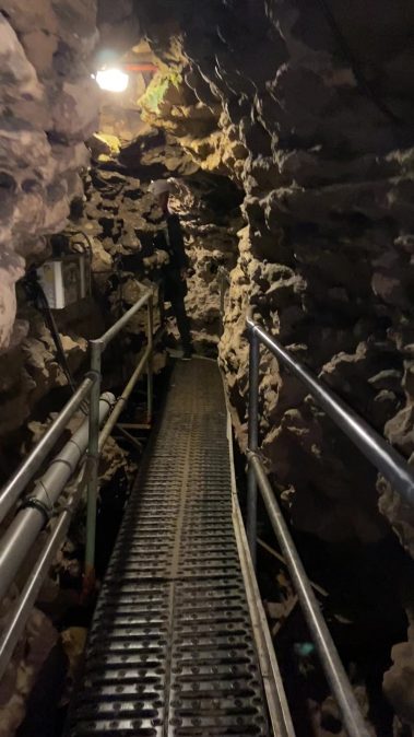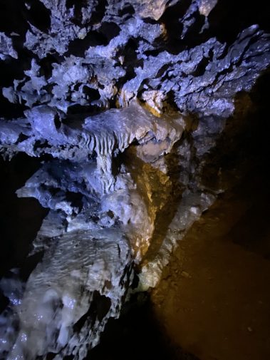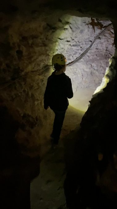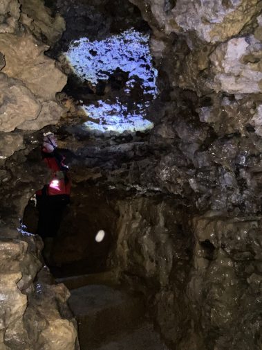 Kaum sind wir in der Höhle, hören wir das beruhigende Plätschern des Höhlenbachs, der uns auf unserer Entdeckungsreise begleitet. Der Weg führt uns durch enge und weite Gänge, und an manchen Stellen müssen wir den Kopf einziehen, weil die Wände so nah sind. Wir staunen über die beeindruckenden Felsformationen, die von Jahrtausenden der Arbeit des Wassers geprägt sind. Es fühlt sich fast magisch an, durch diese geheimen Gänge zu gehen, die wie ein riesiges, natürliches Labyrinth wirken.