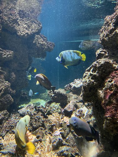 Direkt am Eingang tauchen wir buchstäblich erstmal ab und bestaunen im Vivarium die verschiedenen Unterwasserwelten der Erde. Die Vielfalt an Formen und Farben scheint unendlich und lässt uns staunen. Aber auch die Echsen und Schlangen sind faszinierend. Aber natürlich sind die Pinguine ein besonderes Erlebnis, wie sie durch das Wasser schießen und spielen.