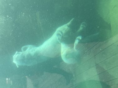 Der Zoo ist in unterschiedliche Klimazonen eingeteilt und gleich nach dem Eingang schlängelt sich der Weg durch die Tundra, bis wir vor dem großen Eisbärengehege stehen. Sowohl vom Aussichtsturm wie auch von unter durch die Glasscheiben lassen sich die Polarbären super beobachten. Und wir haben Glück, denn durch die Panoramafenster können wir die beiden weißem Bären kurz danach auch beim Schwimmen und Tauchen bestaunen.